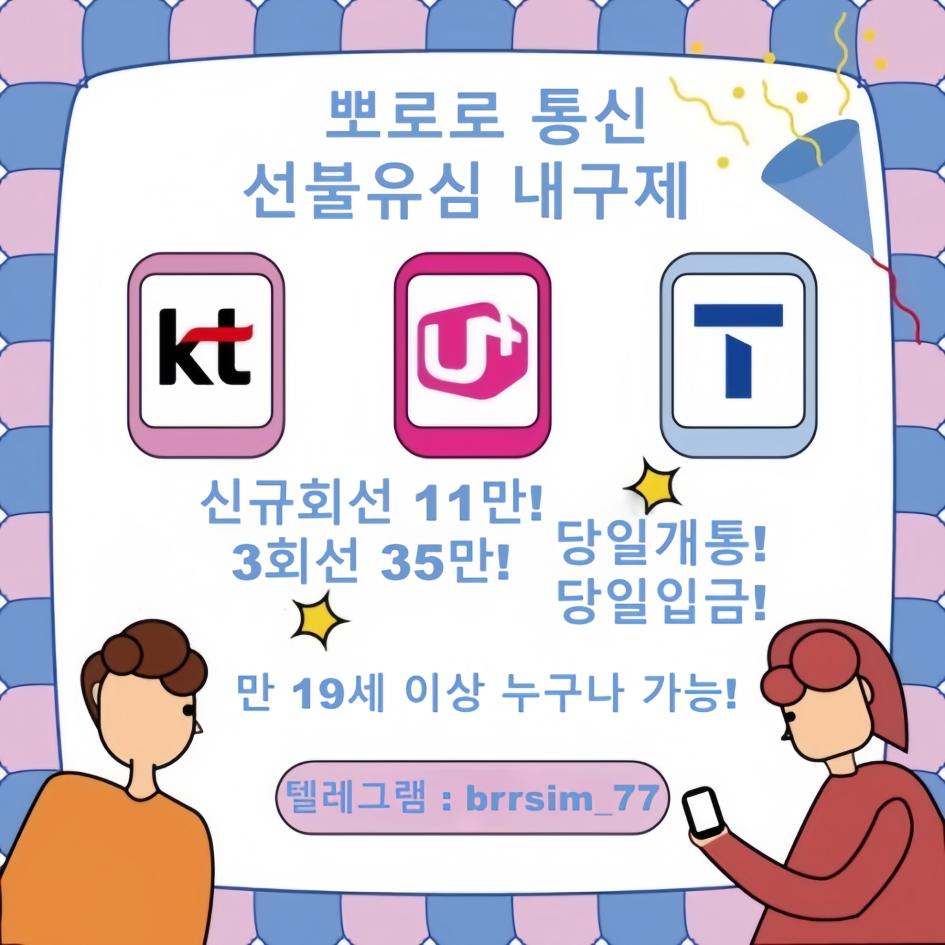 어설픈 신규업체,유령 업체에서 시간낭비 하지마시고 5년차 무사고 뽀로로 통신과 직거래하세요!
