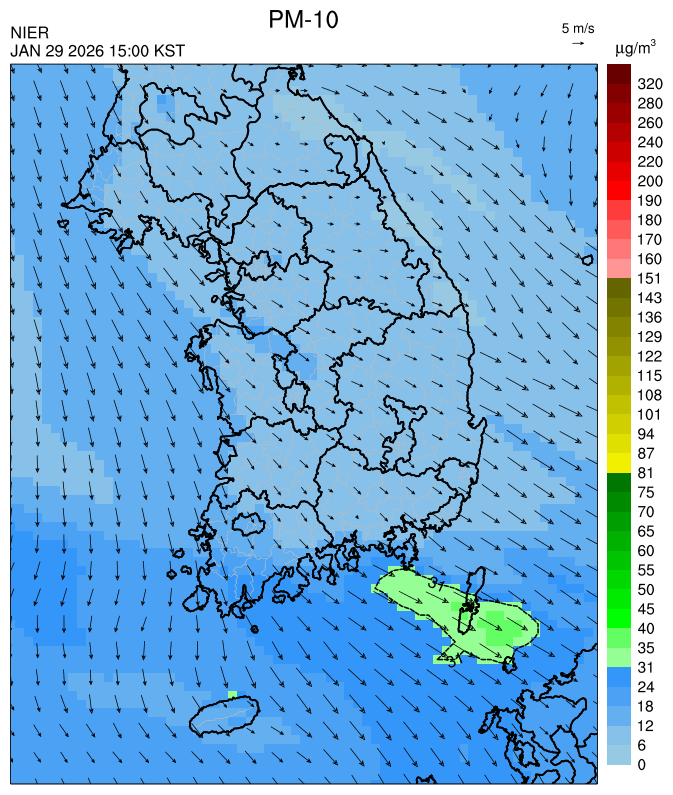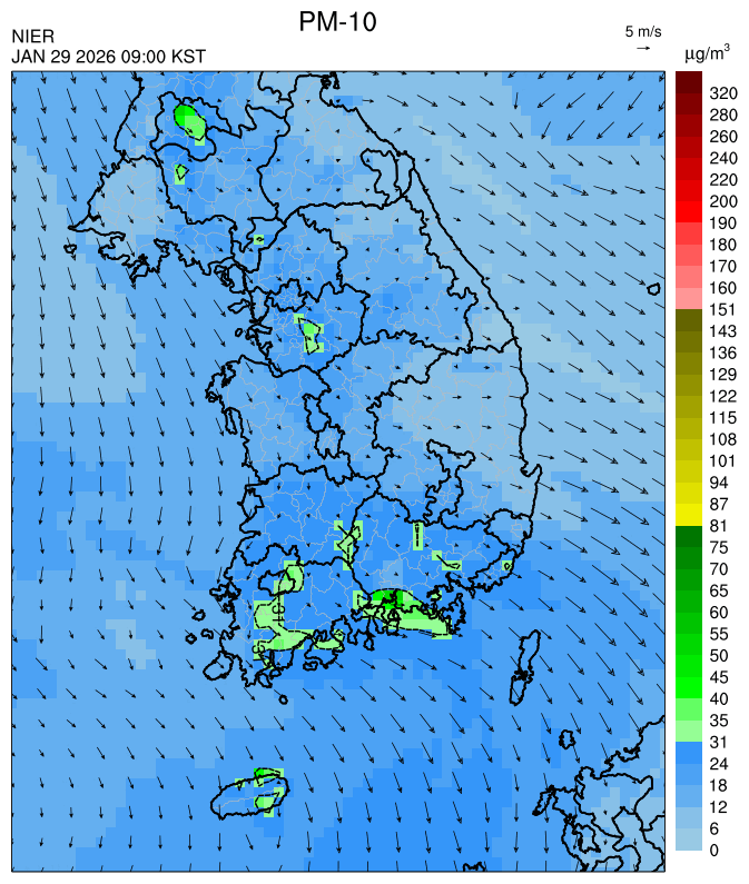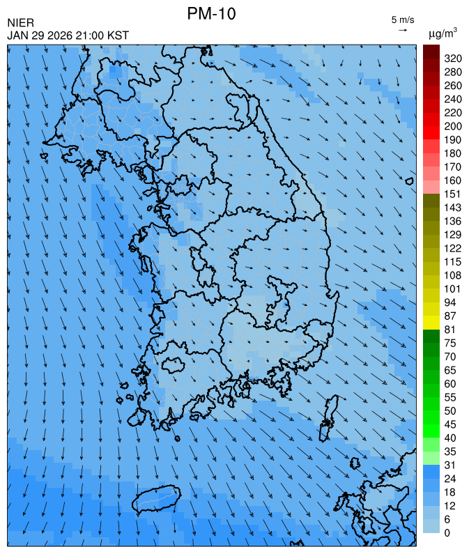 ○ 대부분 중서부와 남부 지역은 새벽에서 오전사이 전일부터 유입된 국외 미세먼지 영향으로 농도가 높겠으나, 낮부터 청정한 북서 기류 유입과 원활한 연직(상·하층) 확산으로 대체로 청정할 것으로 예상됩니다.