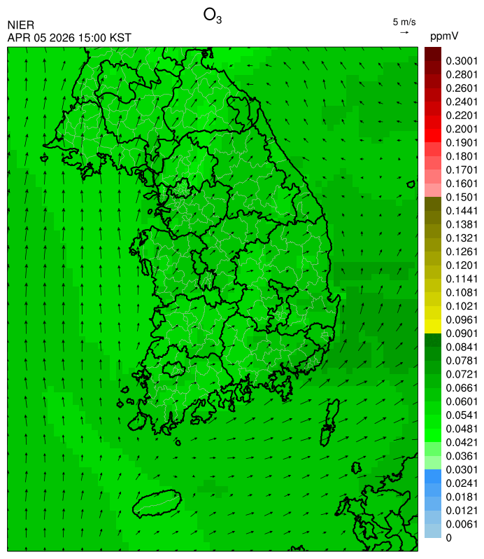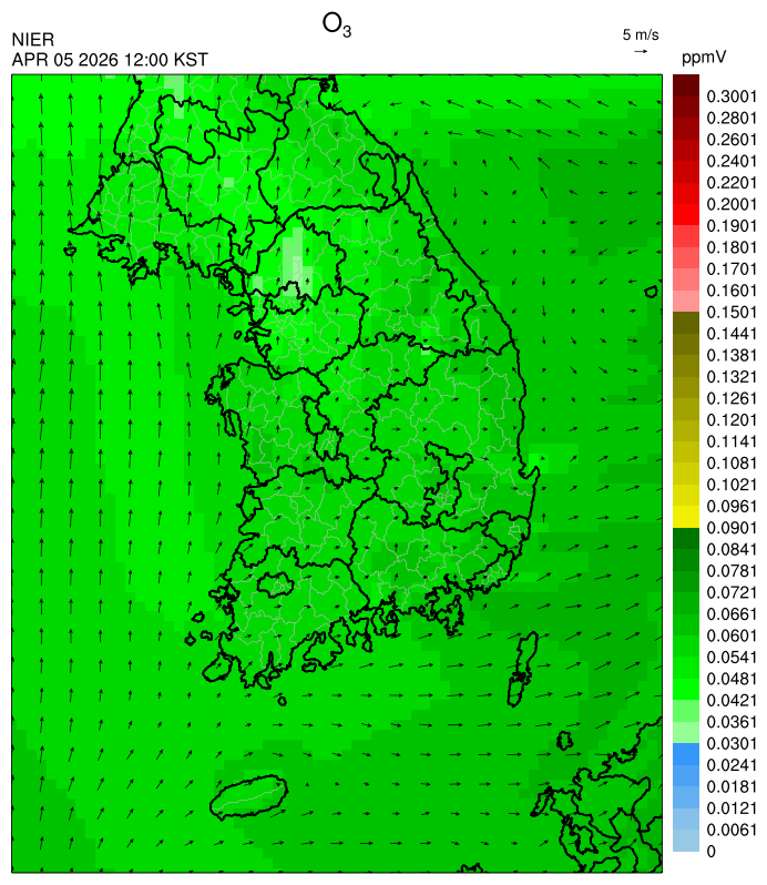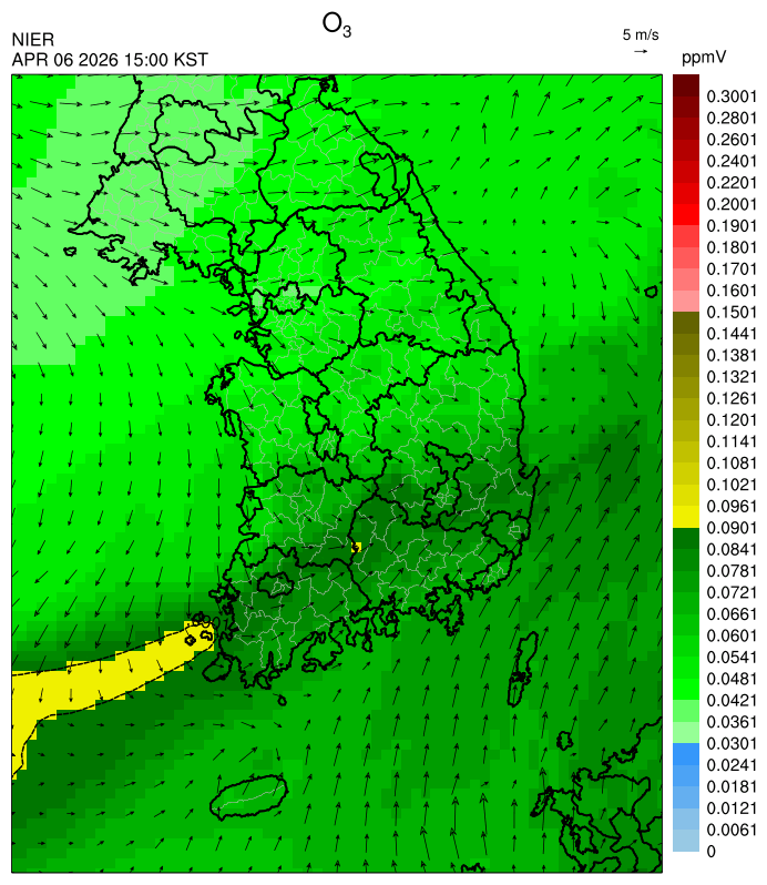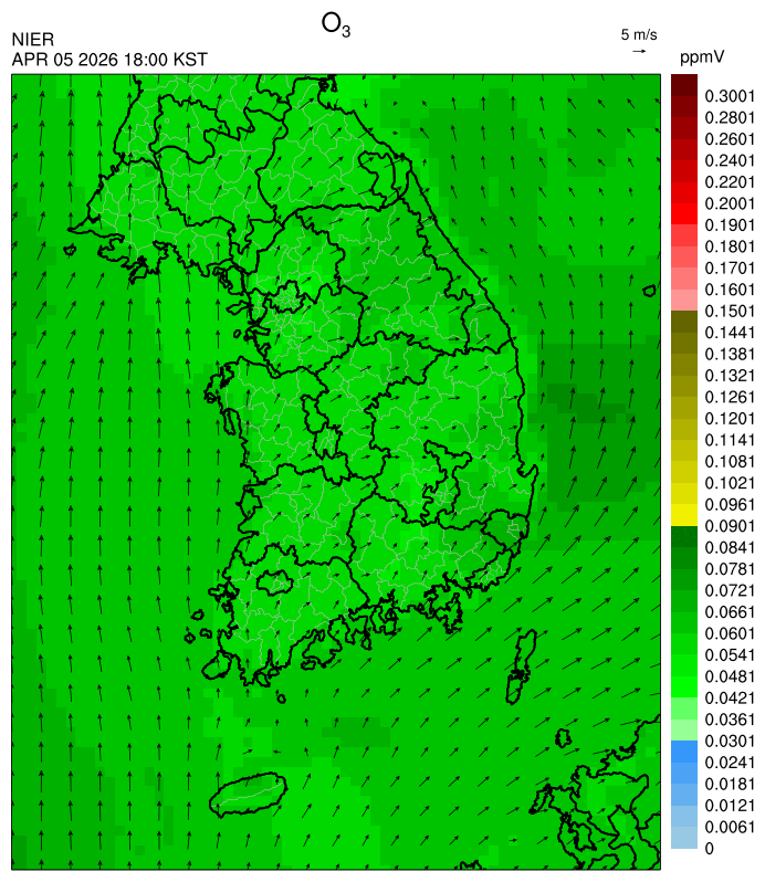 ○ 대기오염물질의 광화학 반응에 의한 오존 생성과 이동으로 일부 남부 해안 지역은 오후에 일시적으로 농도가 높을 것으로 예상됩니다.