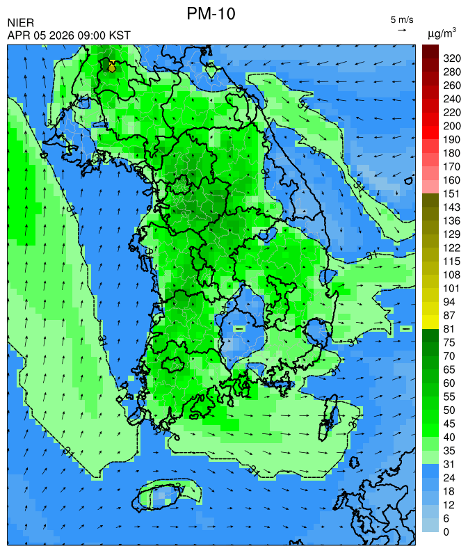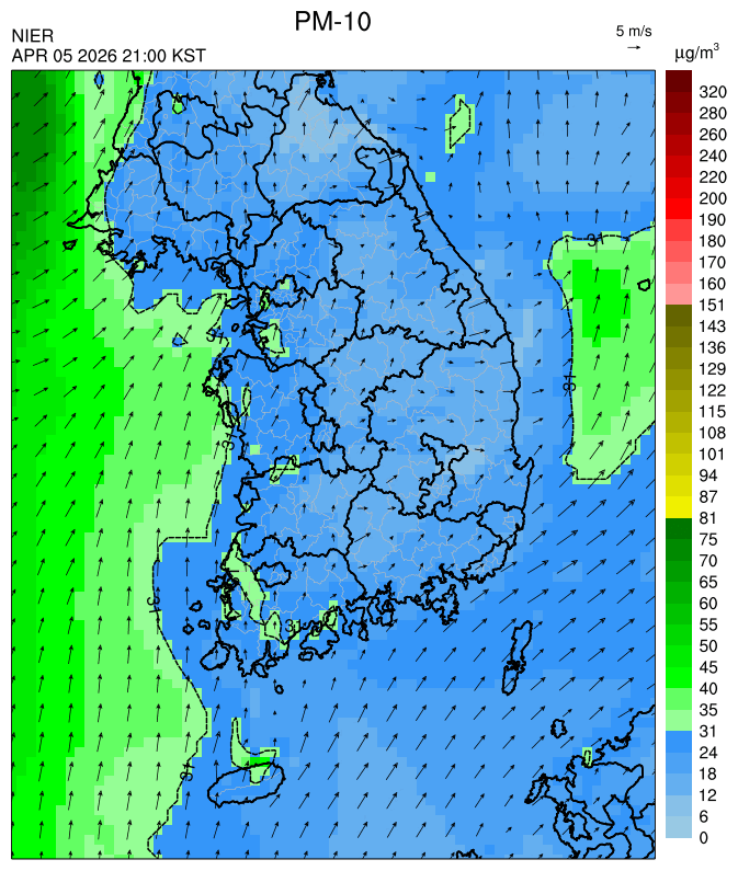 ○ 전일부터 남서 기류를 따라 유입된 국외 미세먼지의 영향으로 오전에 대부분 지역에서 '보통'으로 예상되나, 강수에 의한 세정 효과 영향과 오후부터 대체로 청정한 북서 기류가 중서부 지역부터 유입되면서 밤에는 대부분 지역에서 농도가 해소되어 전 권역의 일평균 농도는 '보통'으로 예상됩니다.