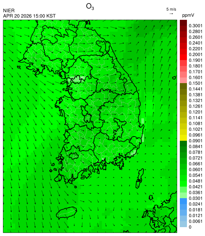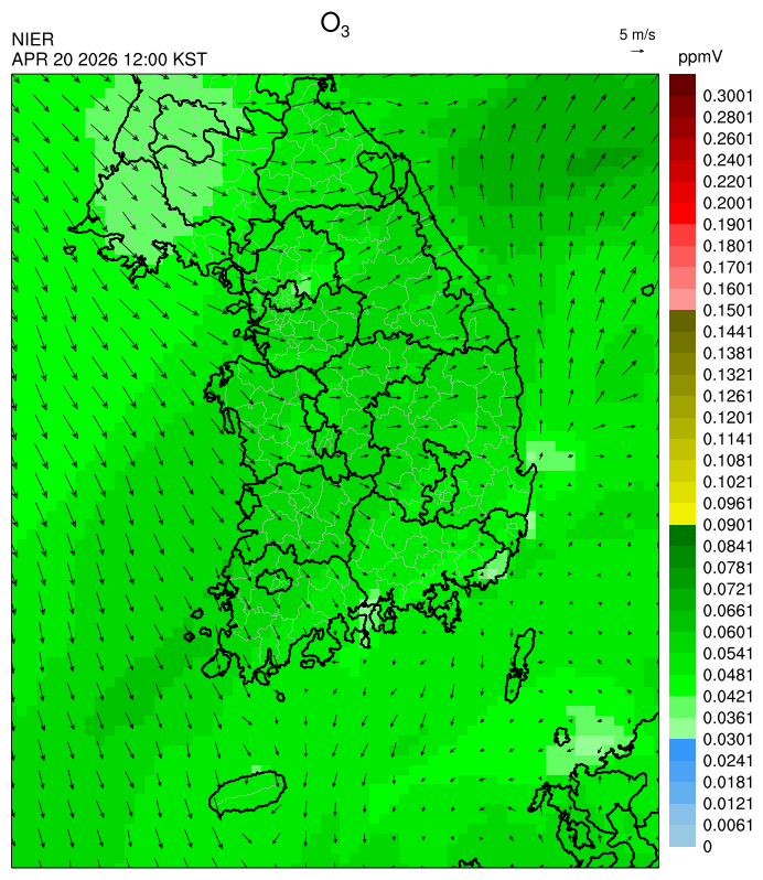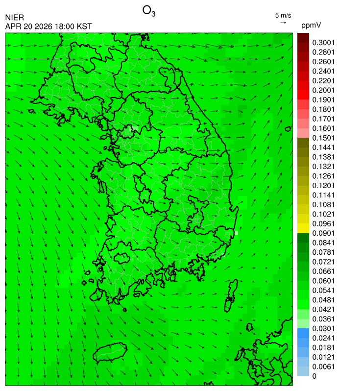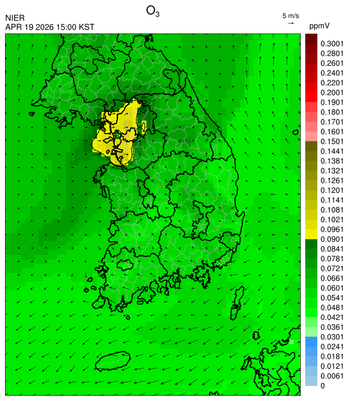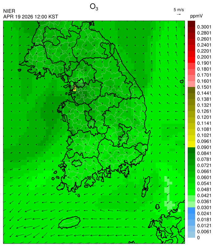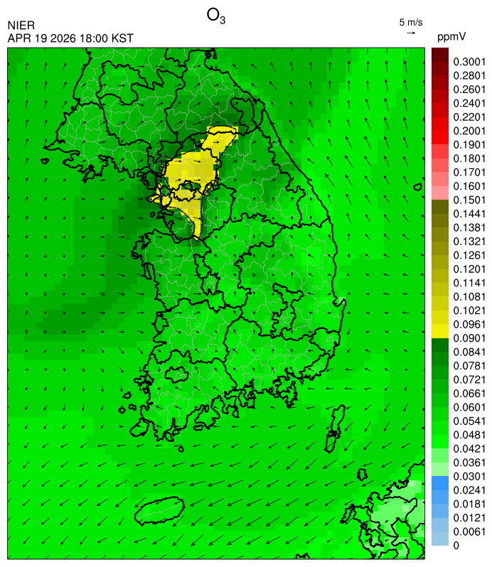 ○ 대기오염물질의 광화학 반응에 의한 오존 생성과 이동으로 대부분 중서부 지역에서 오후에 일시적으로 농도가 높을 것으로 예상됩니다.