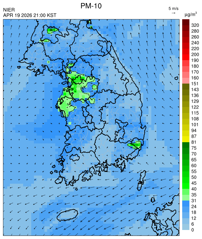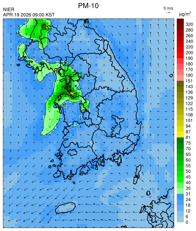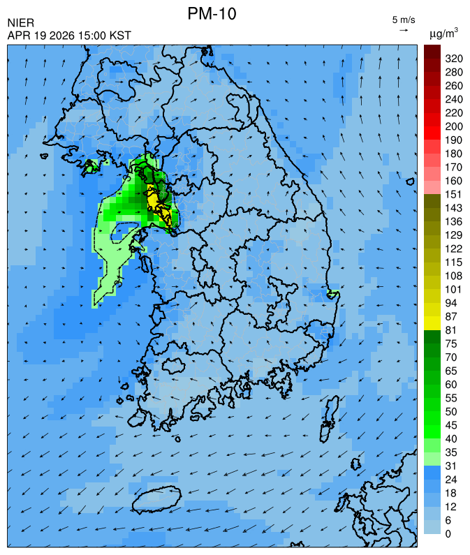 ○ 대부분 지역은 오전에 대기 정체로 전일 잔류 및 국내 발생 미세먼지가 축적되어 농도가 상승하겠고, 늦은 오후에 북서 기류를 따라 중서부 지역을 시작으로 국외 미세먼지가 유입되어 남동진하여 일평균 농도가 '보통'으로 예상됩니다.