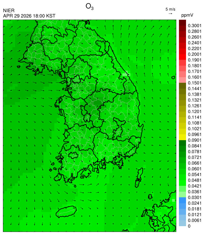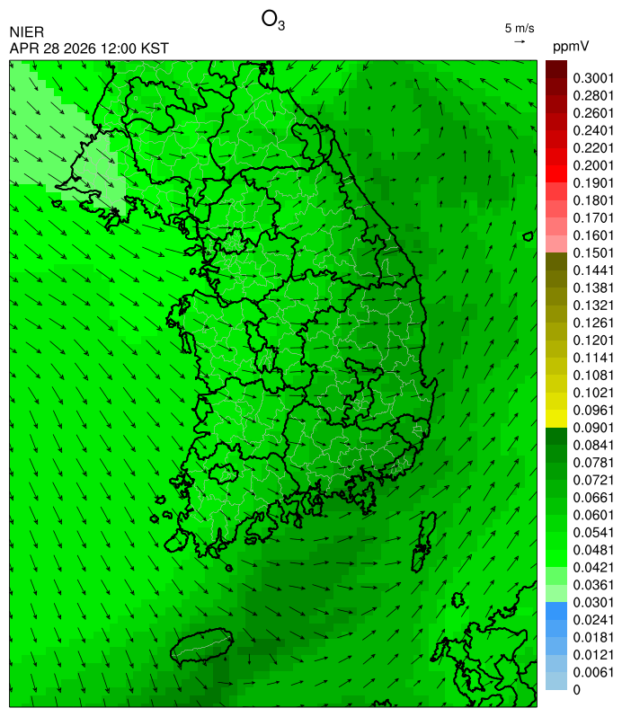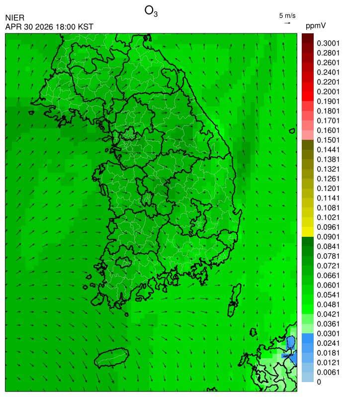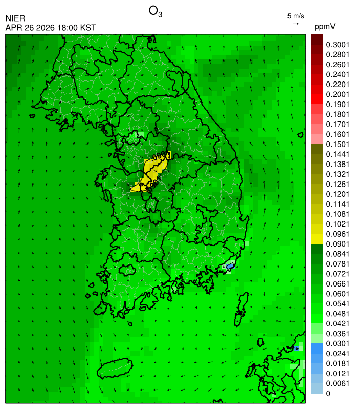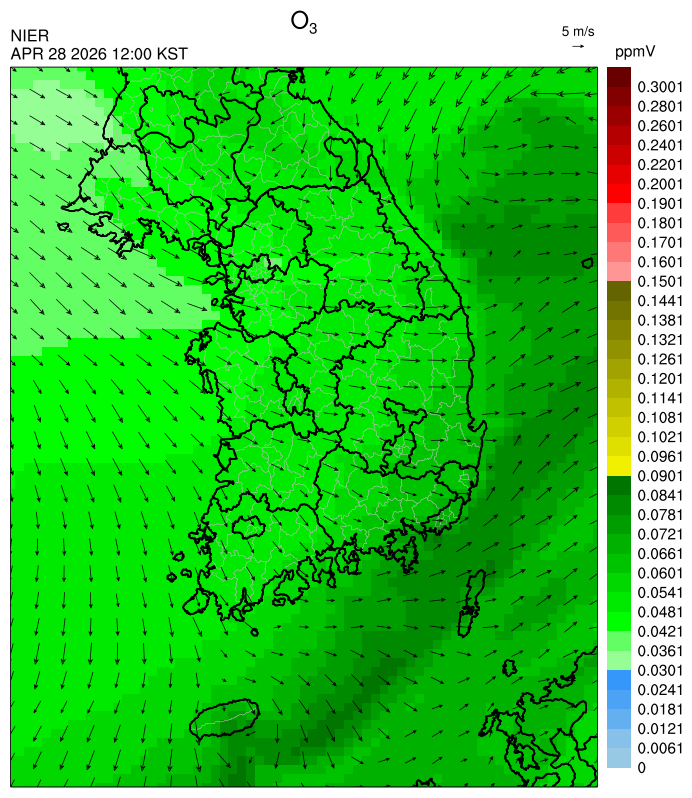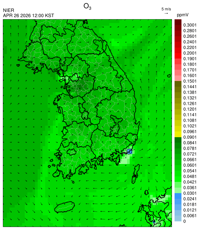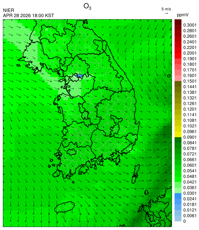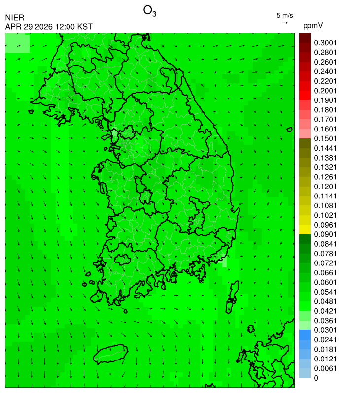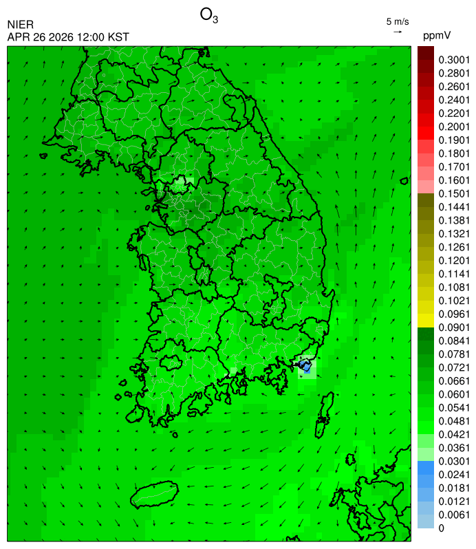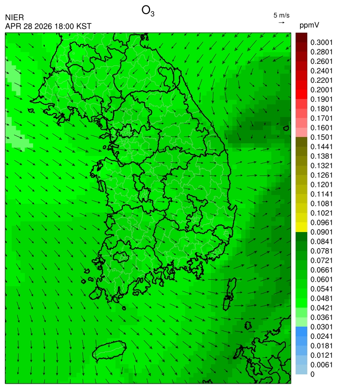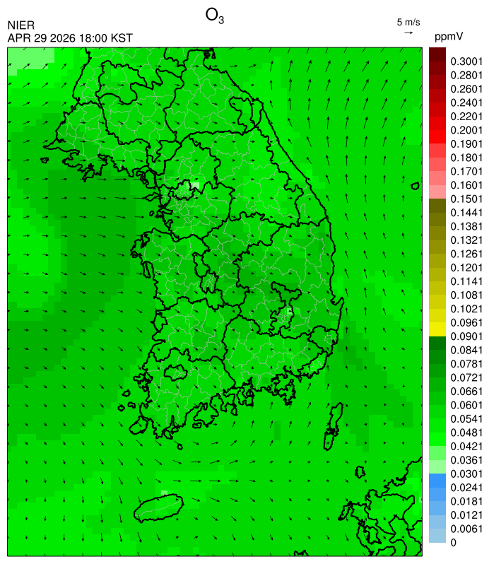 ○ 대기오염물질의 광화학 반응에 의한 오존 생성과 이동으로 일부 남부 지역은 오후에 일시적으로 농도가 높을 것으로 예상됩니다.
