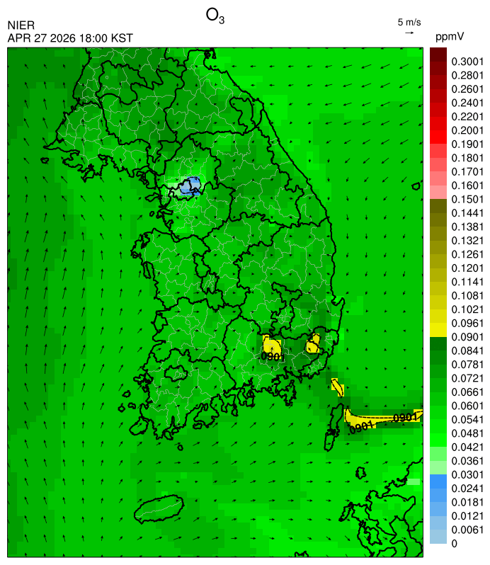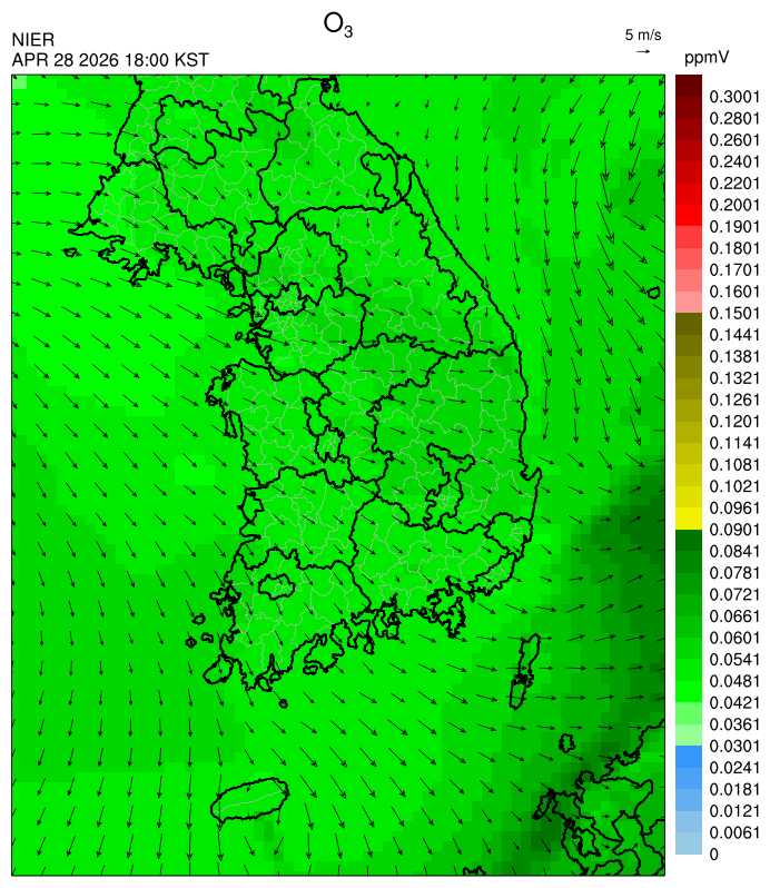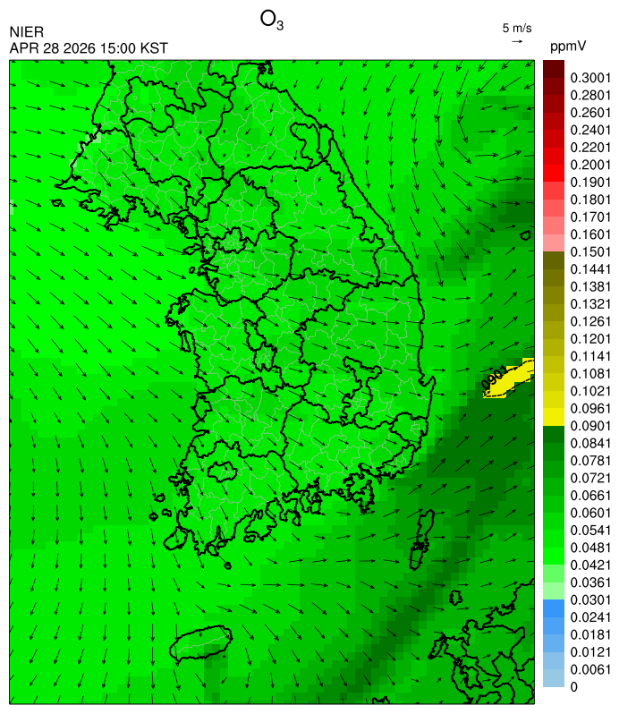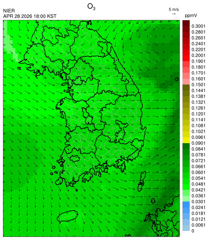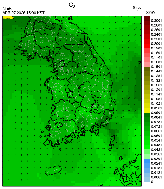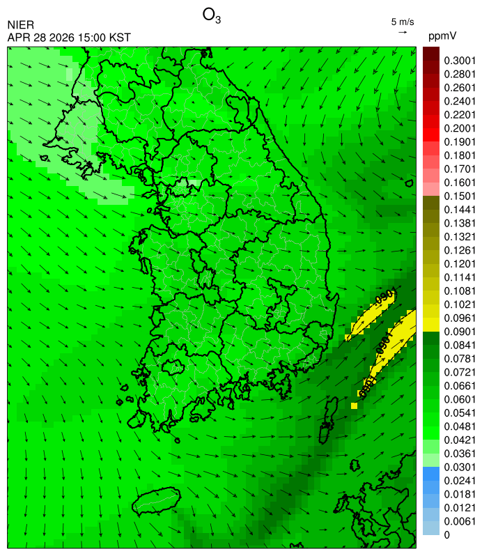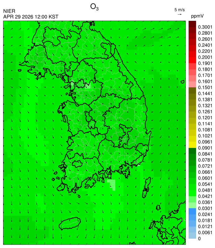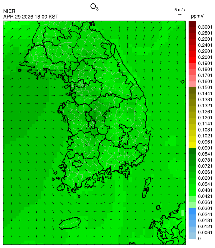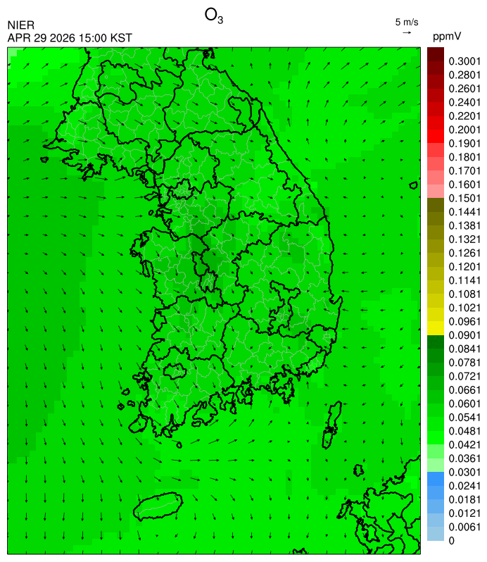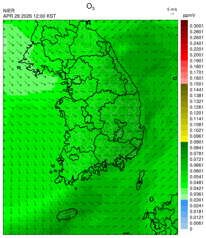 ○ 대기오염물질의 광화학 반응에 의한 오존 생성과 이동으로 일부 남부 지역은 오후에 일시적으로 농도가 높을 것으로 예상됩니다.