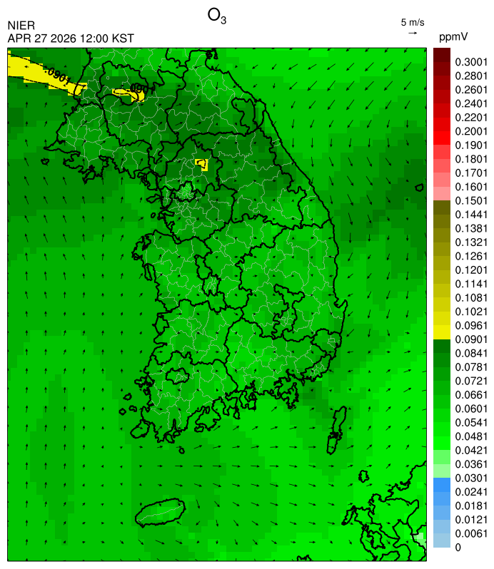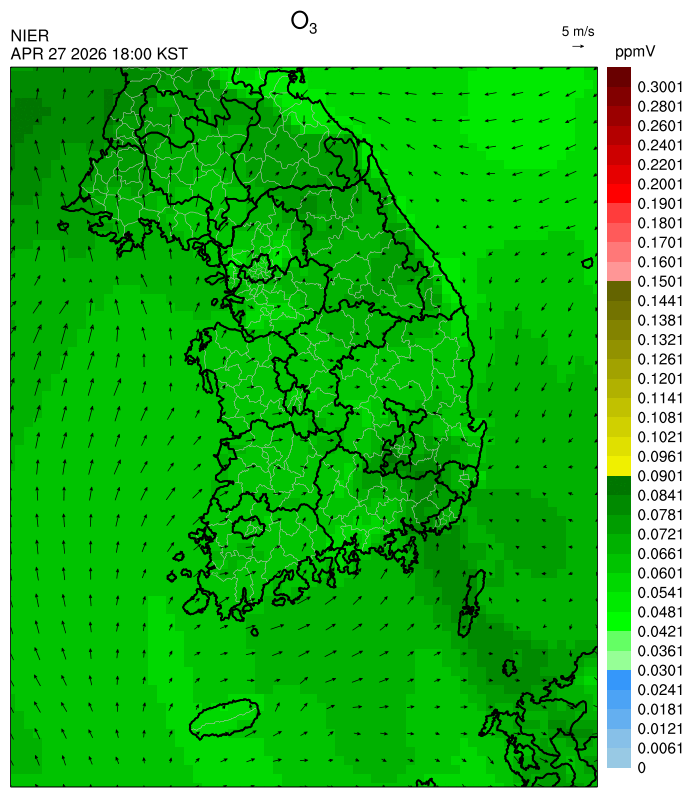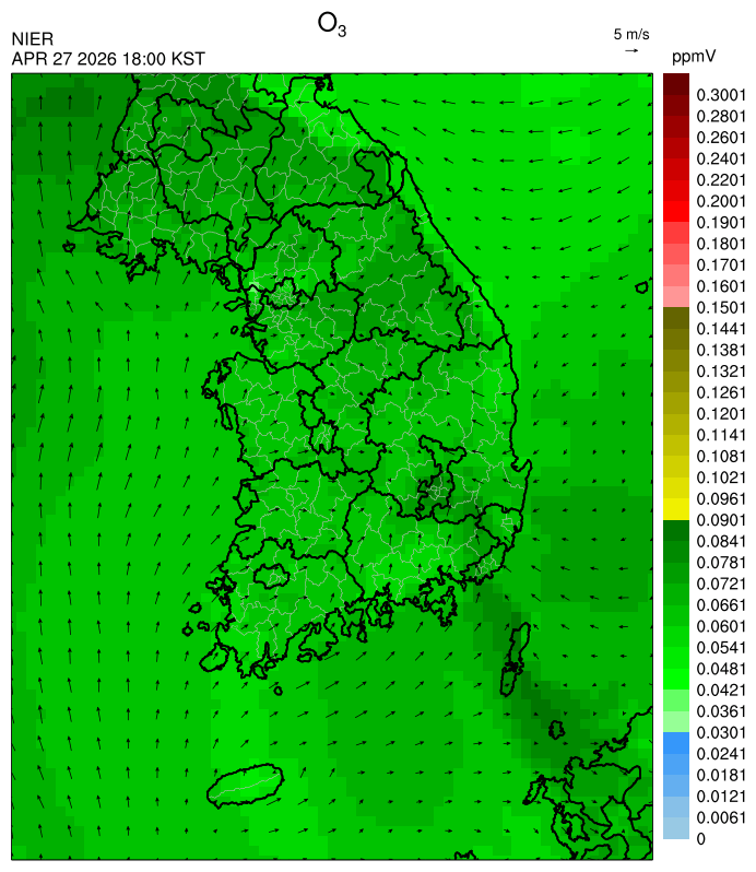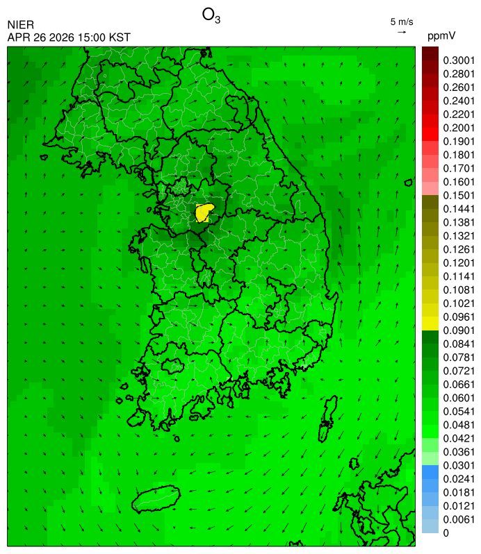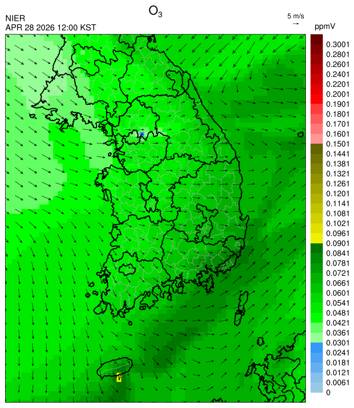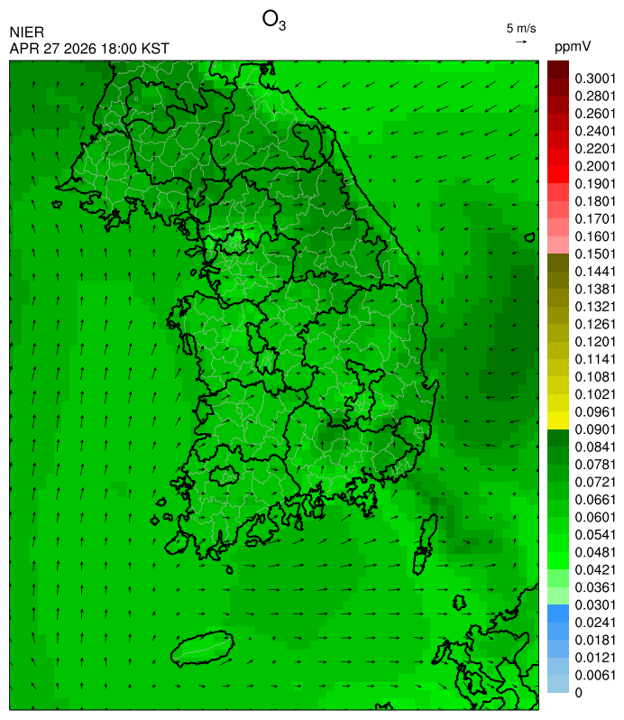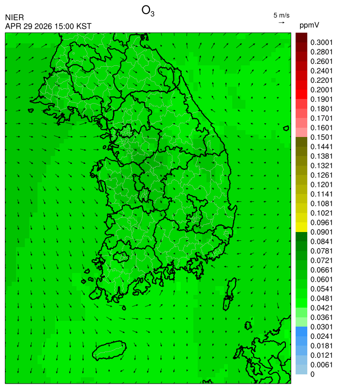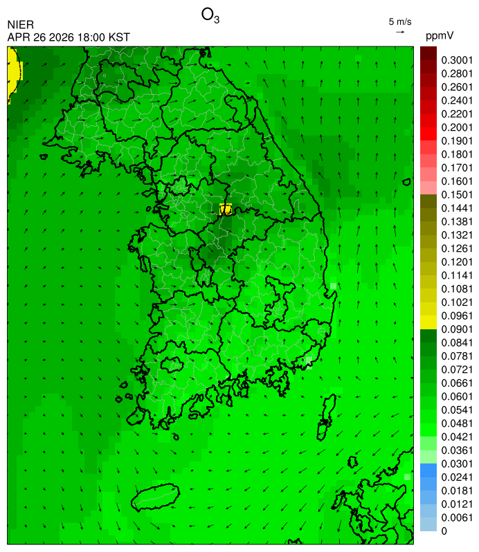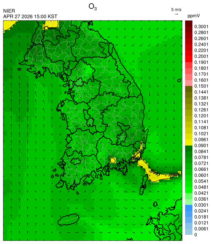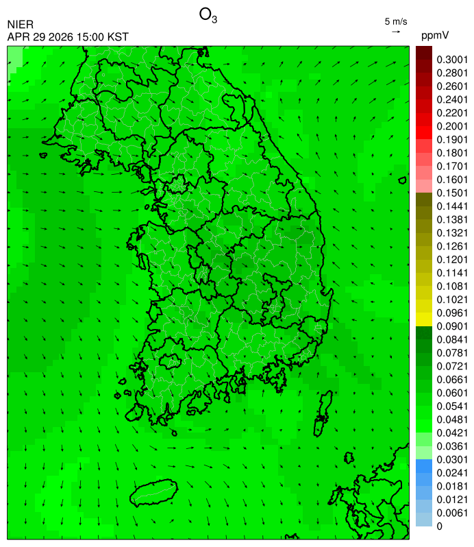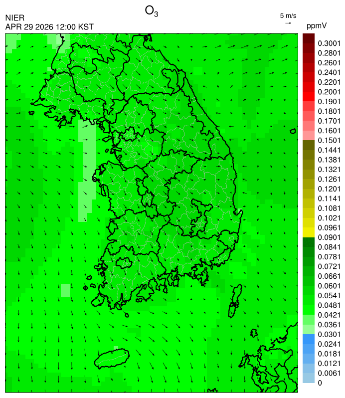○ 대기오염물질의 광화학 반응에 의한 오존 생성과 이동으로 일부 남부 지역은 오후에 일시적으로 농도가 높을 것으로 예상됩니다.