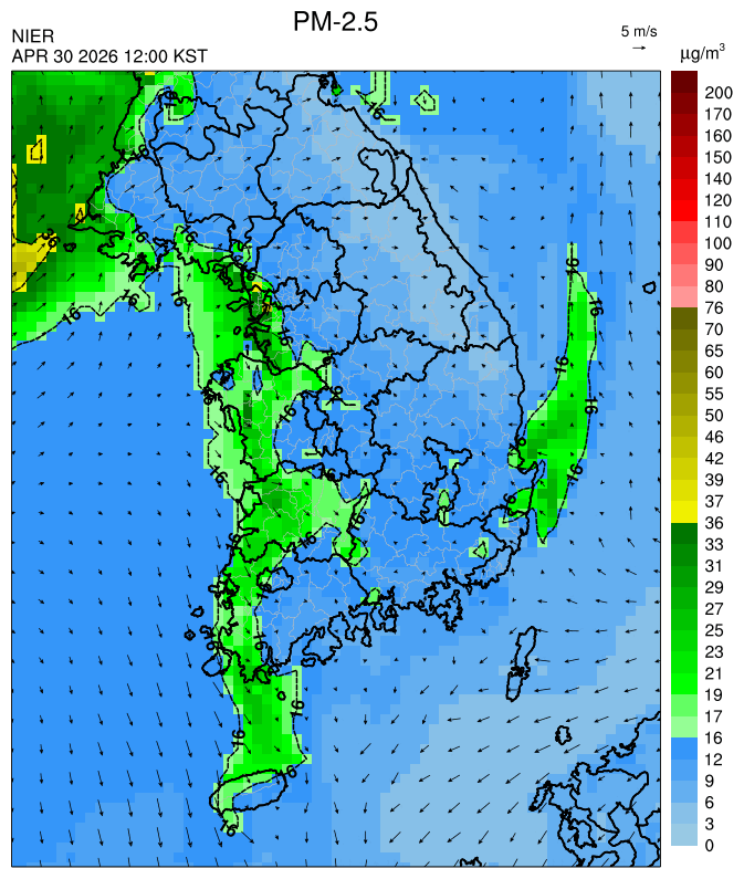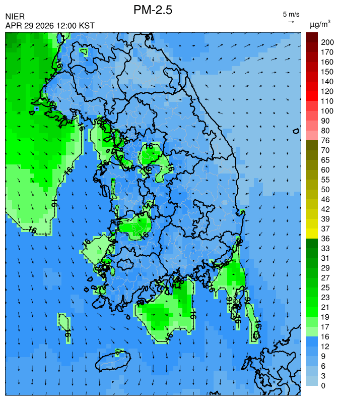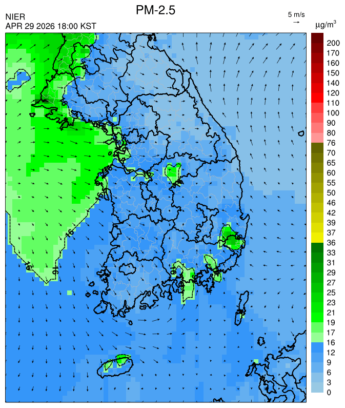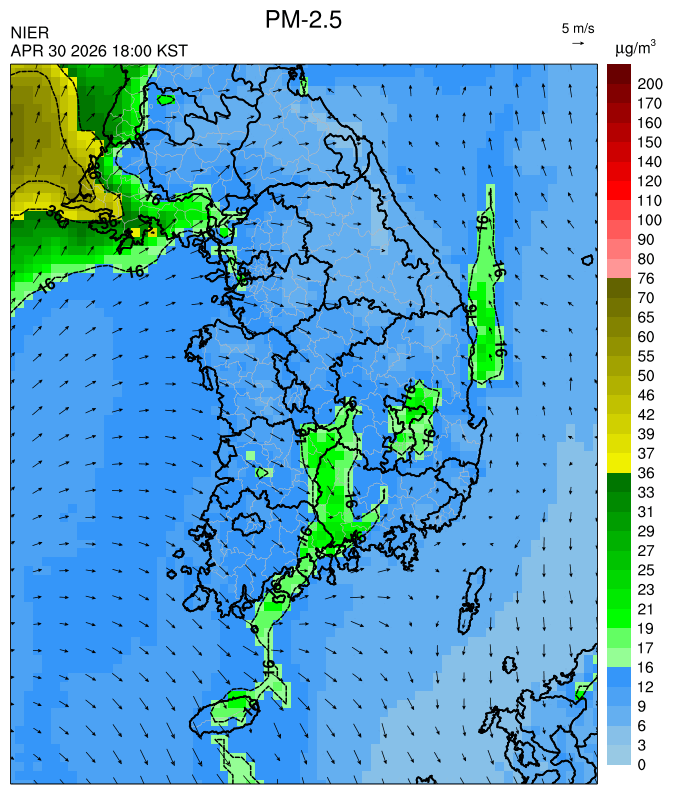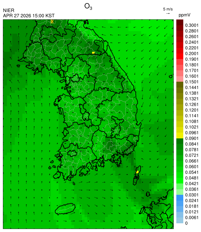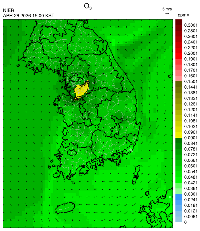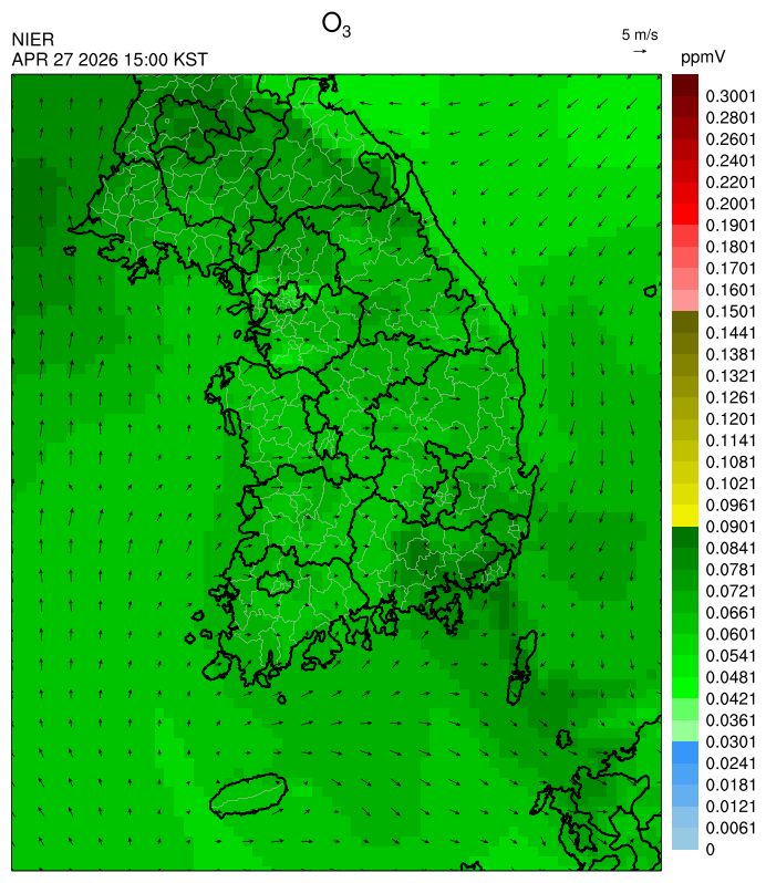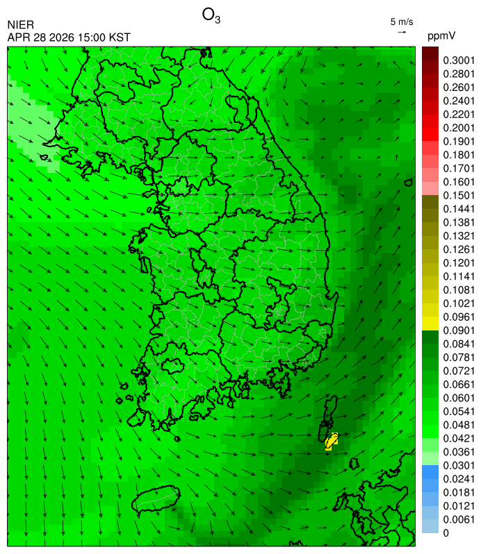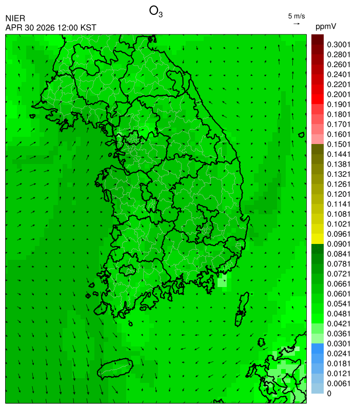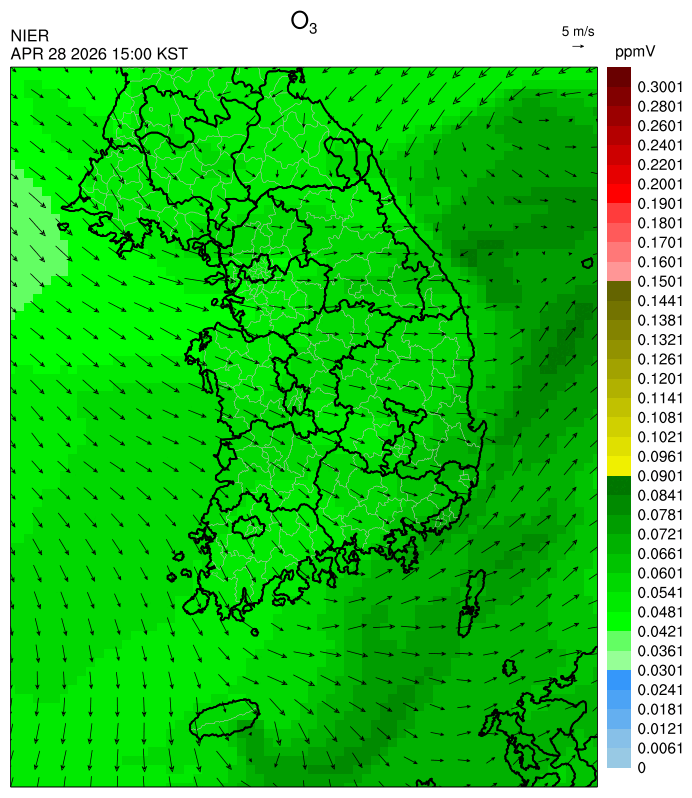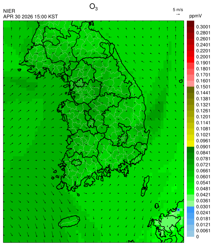 ○ 대기오염물질의 광화학 반응에 의한 오존 생성과 이동으로 일부 남부 지역은 오후에 일시적으로 농도가 높을 것으로 예상됩니다.